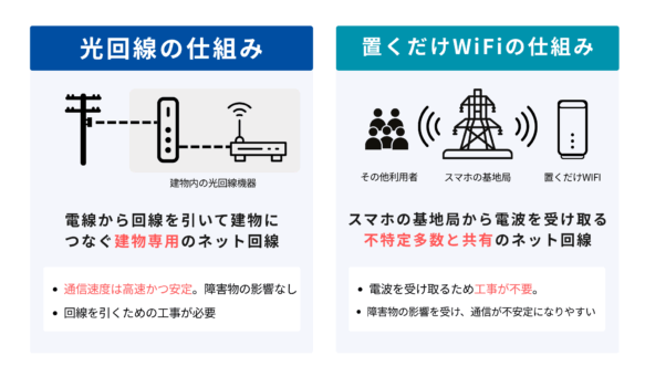 光回線と置くだけWiFi(ホームルーター)の違い【インターネット回線比較表】