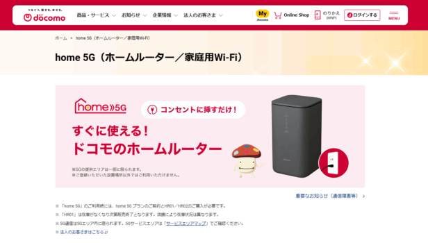 BizAir +5G for WiMAX![]() | シンプルフリーWiFi![]() | docomo home 5G![]() | |