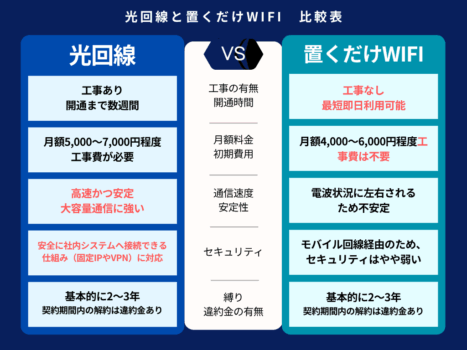 光回線と置くだけWiFi、それぞれどんな法人に向いている?