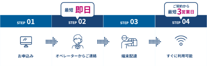 | ◆移動中や出張先で 出先でのメールチェック、タブレットやノートPCを使った営業提案時も安心です。 | ◆飲食店や店舗で タブレットでメニューのオーダーやカード決済も行う際もスムーズに行えます。 | ◆現場監督の方へ 郊外の建設工事現場などを行き来する現場監督者を有する法人様に人気です。 | ◆短期の在宅や隔週勤務 短期の在宅や隔週勤務の場合、固定回線ではなくポケットWiFiが便利です。 |