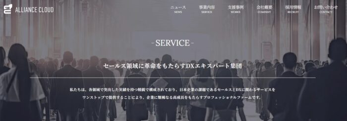 ・特徴:主力サービスの一つ「ALLIANCE Cloud BDR」は、従来のWebマーケティングではリーチしづらい大手企業や中小企業の意思決定者との新規商談を、アウトバウンド施策によって創出するBtoB営業支援サービスです。