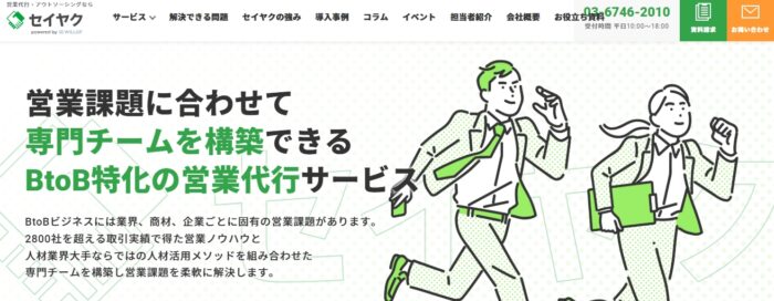 営業活動における受注率や商談数を向上させたい企業に適している営業代行会社です。