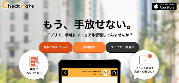 マニュアルはパソコンはもちろん、スマートフォンからも作成できます。