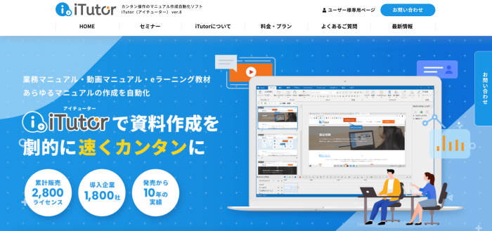 iTutorは、パソコン上でマニュアル化したい操作をするだけでマニュアルが作成できるマニュアル作成ツールです。