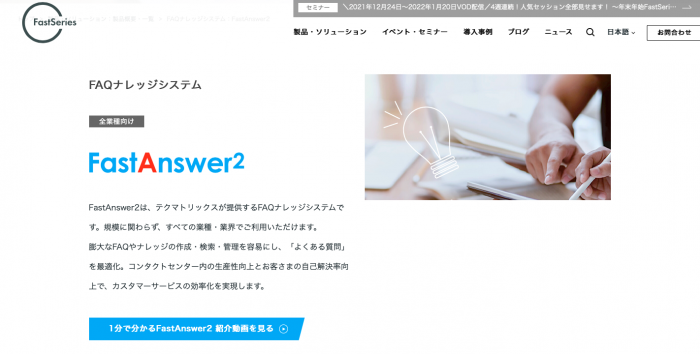 FastAnswer2は、テクマトリックスが開発と運営を行っているFAQツールです。