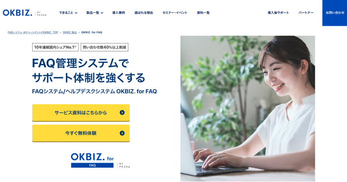 OKBIZ. for FAQは、10年連続シェアNo.1のFAQツールです。