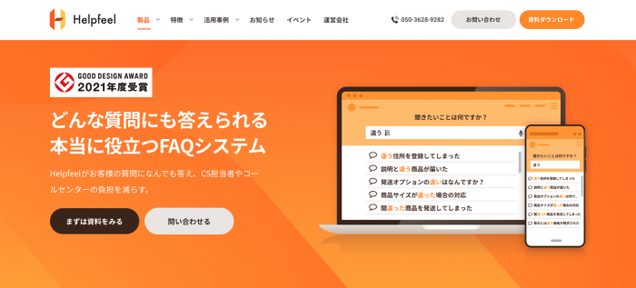 Helpfeelは、FAQ検索ヒット率98%を実現している高性能のFAQツールです。
