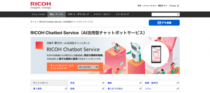 その他にもRICOH Chatbot Serviceでは、無料トライアルや無料デモが使用できます。