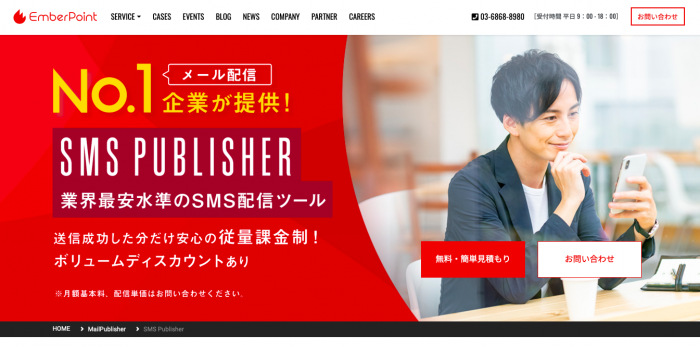SMS Publisherは、従量課金制を採用したSMS送信サービスです。
