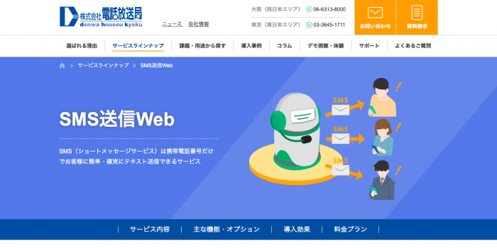 SMS送信Webは、株式会社電話放送局が提供しているSMS送信サービスです。
