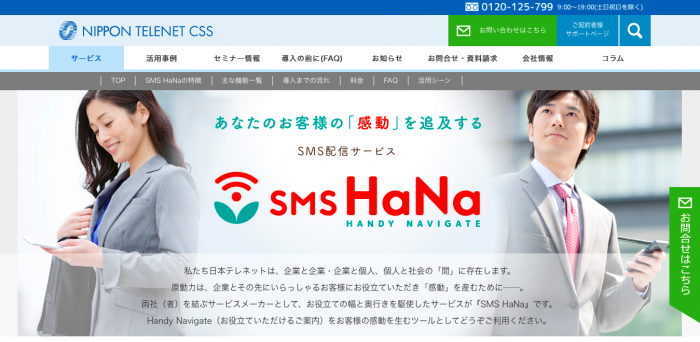 SMS HaNaは、日本テレネットが提供するSMS送信サービスです。