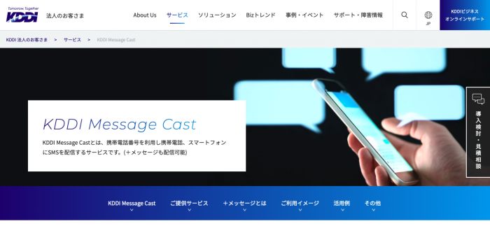 KDDI Message Castは、携帯キャリア大手のKDDIが提供するSMS送信サービスです。
