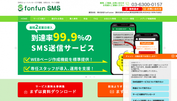 fonfunSMSは、到達率99.9%のSMS配信サービスです。