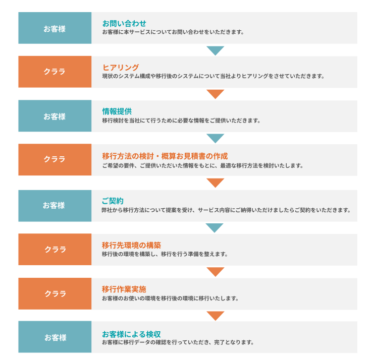 クララ株式会社の専門エンジニアが移行代行を行うサービスです。