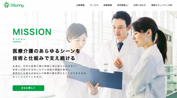 株式会社3Sunnyは、医療法人向けにSaaS製品を提供している企業です。