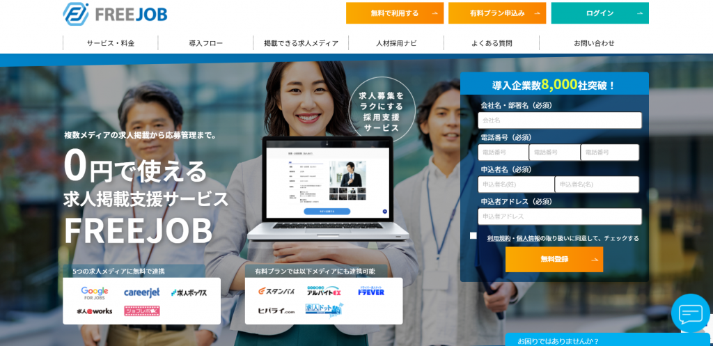 FREE JOBは5つの求人メディアに無料で求人を掲載、応募管理までできます。