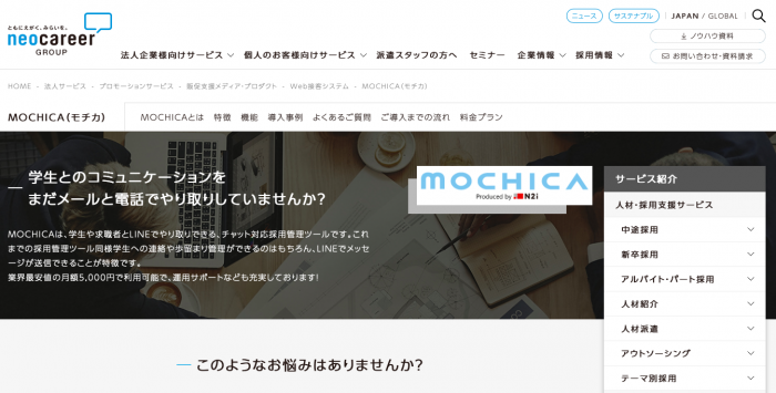 MOCHICAの特徴は、LINEを活用して応募者とコミュニケーションを取ることができるという点です。