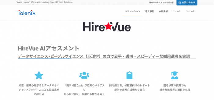HireVue AIアセスメントは、AI技術を用いて応募者を5段階で評価することができる採用管理ツールです。