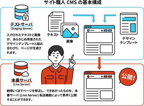 サイト職人は、テストサーバと本番サーバで構成されています。