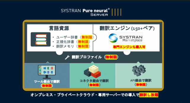 そのようなグローバル展開で浮上する課題を解決してくれるのがSYSTRAN Pure Neural® Serverです。