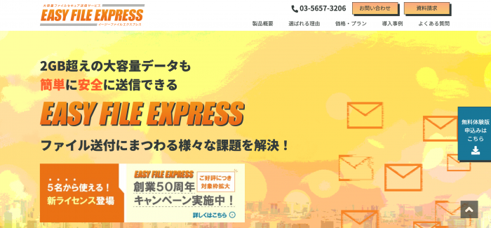 EASY FILE EXPRESSは大容量・安全性・操作性・コスパのよさがそろう法人向けファイル転送サービスです。