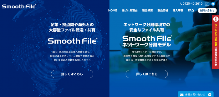 Smooth Fileは、ユーザー数無制限で使える法人向けファイル転送サービスです。