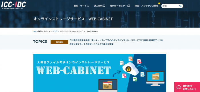 WEB-CABINETは、アクセス制限機能や通信の暗号化、ワンタイムパスワードなど基本的なセキュリティ機能が備わっているファイル転送サービス。