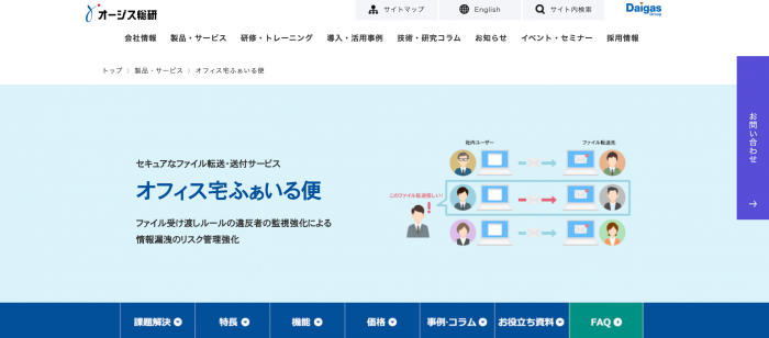 オフィス宅ふぁいる便は、ルールを破ったユーザーを監視し、情報漏えいを防ぐファイル転送サービスです。