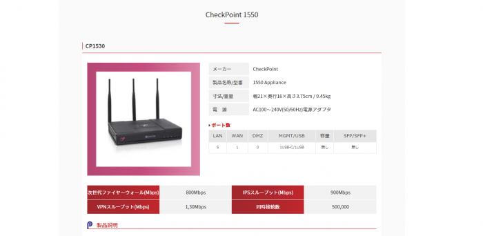 CheckPoint 1500 Applianceの特徴は以下の通りです。