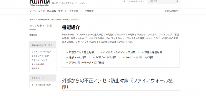 Fuji Xerox beat box ファイアウォールは大手企業である富士フイルムが運営しているサービスです。