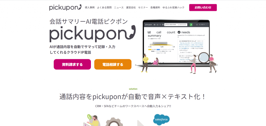 - 通話内容をpickuponが自動で音声×テキスト化!