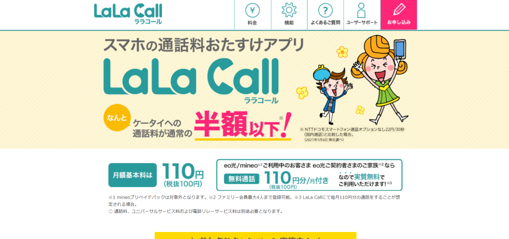 LaLa Callは通常の携帯への通話料が半額以下で通話が可能となり、LaLa Callから固定電話に電話をかけても
