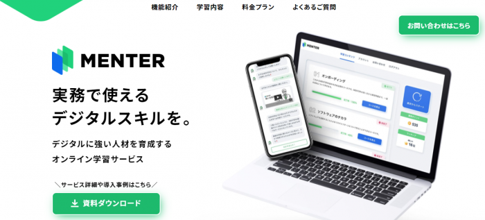 MENTERはITスキルの強化に特化しており、デジタルスキル・リモートワークスキル・データ分析スキルなどさまざまな学習コースが用意されています。