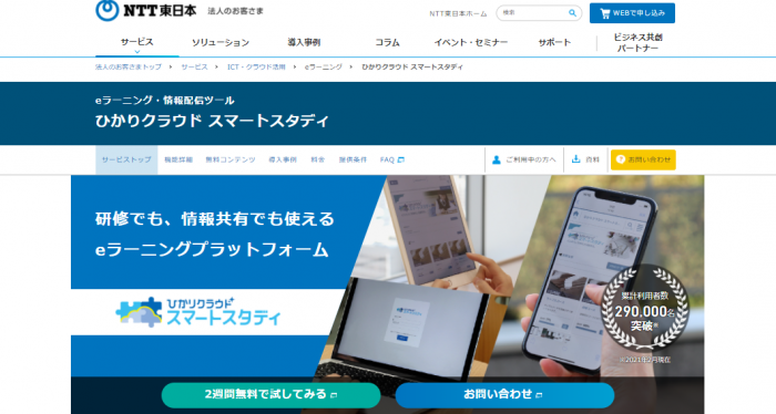 ひかりクラウド スマートスタディはNTT東日本が提供するeラーニングシステムです。