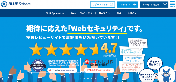 複数のレビューサイトで高評価を獲得しているBLUE Sphere。ウェブサイトを守り抜くため、3つの機能をそろえています。