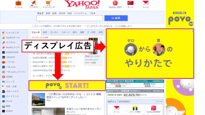 ディスプレイ広告は検索サイトから実際にサイトを開いた時のページの上部や下部に表示される広告です。