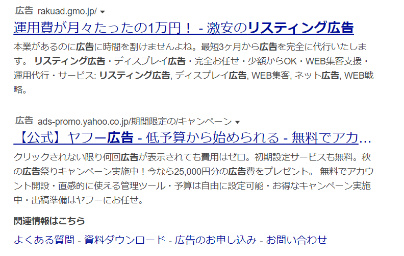 そして、自然検索(オーガニックサーチ)よりも前に表示されるため、SEO対策などをする必要もありません。