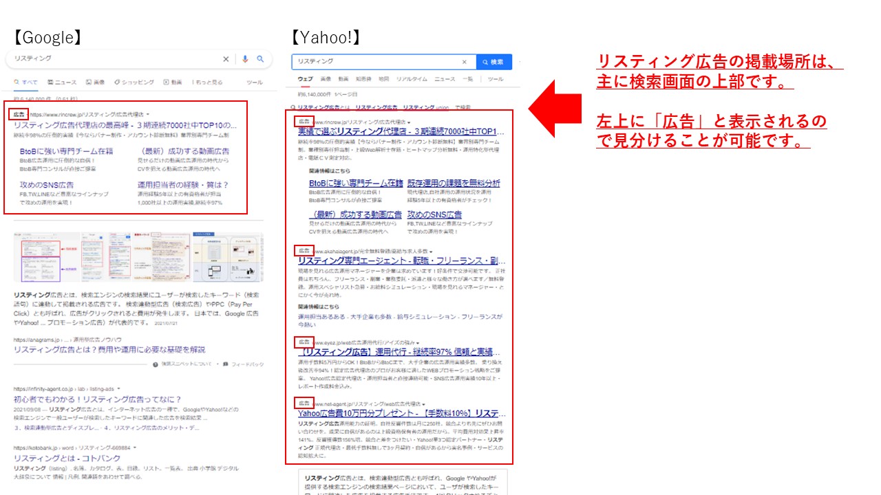 リスティング広告が掲載される場所(Google・Yahoo!)